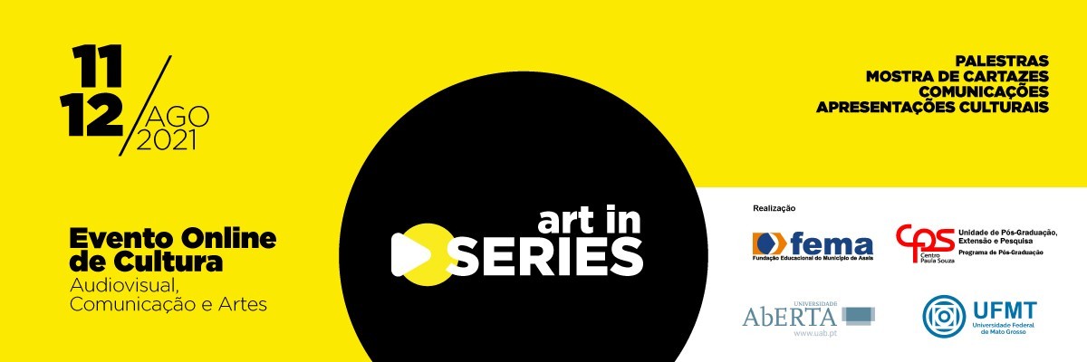 A Unidade de Pós-Graduação, Extensão e Pesquisa do Centro Paula Souza [CEETEPS/UEPEP], Fundação Educacional do Município de Assis [FEMA], Universidade Aberta de Portugal [UAb] e a Universidade Federal de Mato Grosso [UFMT] convidam para o Art In Series 2021, evento de curta duração [11 e 12/08/21] e gratuito aos espectadores; que envolverá palestras, comunicações científico-culturais, apresentações e mostras virtuais.