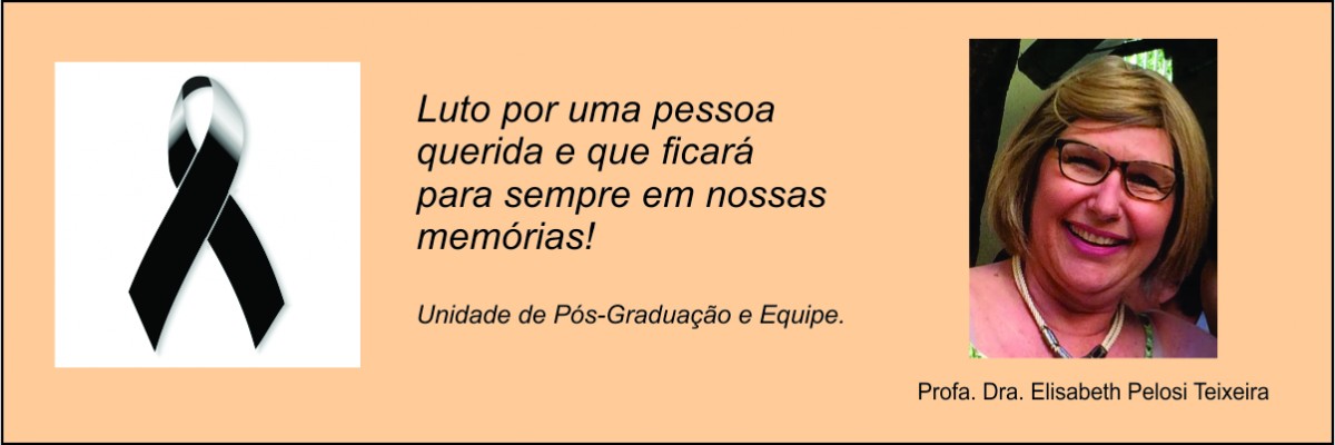 É com muita tristeza que comunicamos na data de hoje dia 23/06, o falecimento da professora doutora da Unidade de Pós-Graduação, Extensão e Pesquisa – Elisabeth Pelosi Teixeira.