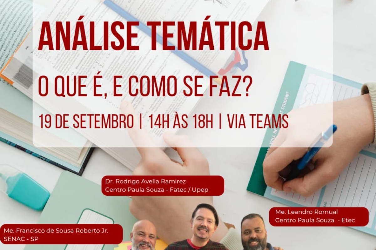 Estão abertas as inscrições para o Seminário Análise Temática: O que é? E para que serve?, 19/09/25 (sexta-feira), das 14h às 18h.