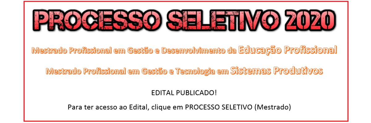 Publicação do Edital do Processo Seletivo 2020 para o Metrado Profissional em Gestão e Desenvolvimento da Educação Profissional e Gestão e o Metrado Profissional em Tecnologia em Sistemas Produtivos do Centro Estadual de Educação Tecnológica Paula Souza.